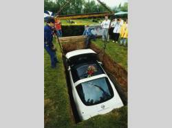 Jedenasedmdesátiletý George Swanson zemřel zemřel 31. března 1994. Ani po smrti nechtěl odloučit od svého auta. Nechal se proto pohřbít ve svém bílém Chevroletu Corvette z roku 1984. Kvůli vykopání hrobu pro auto zakoupil na hřbitově Bush Creek v Irwinu v Pensylvánii 12 parcel.