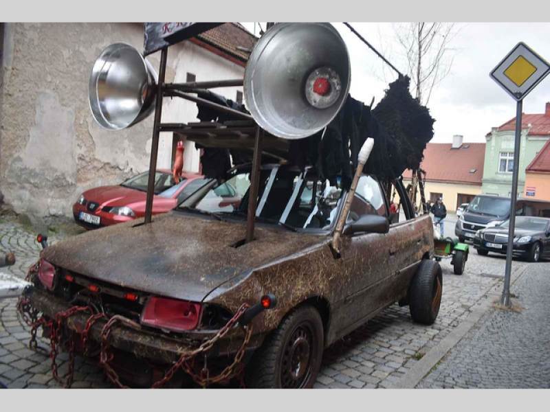 Slepičák, pavoučí auto a rikša s vanami. Složení automobilového parku krampusů, který vytvořil František Starý z Krahulčí na Jihlavsku spolu se svými svými přáteli. Na ďábelské stoje předělávají vyřazená vozidla, která už nemají technickou. Ta pak používají při své krampus show.