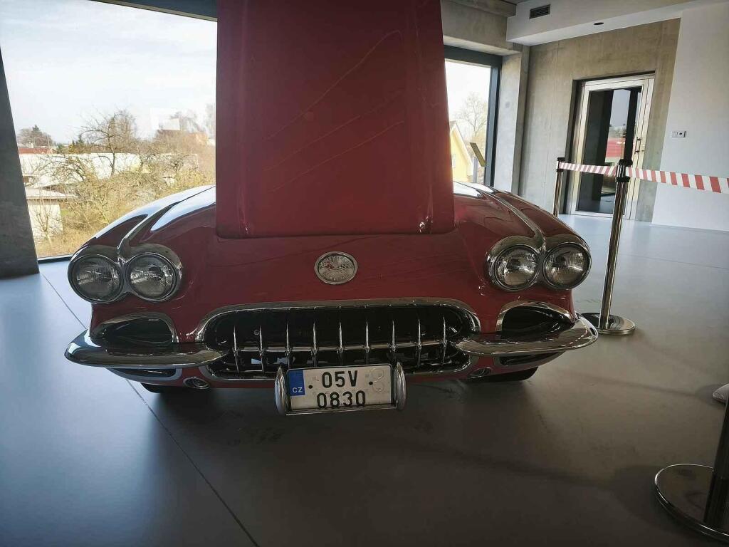 Hned vedle trůní moderní americká síla - Chevrolet Corvette C8 Stingray s motorem V8 o výkonu 482 koní. „Je to americká ikona, kterou miloval i Elvis Presley. Ten si tahle auta kupoval pro radost a byl jejich velkým fanouškem,“ doplňuje s úsměvem.