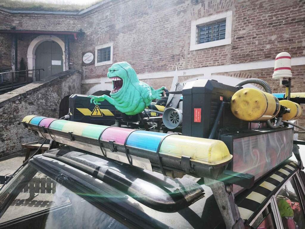 Konkrétně se nechal inspirovat druhým dílem filmové ságy z roku 1989. To potvrzuje i logo na dveřích – ikonický přeškrtnutý duch ukazující dvěma prsty vítězné „V“ jako dvojku. Právě v tomto díle začali Krotitelé duchů své auto využívat i jako výrazný reklamní poutač, což do Vrbkova konceptu muzea zapadalo, ale zároveň mu to udělalo pár vrásek na čele.