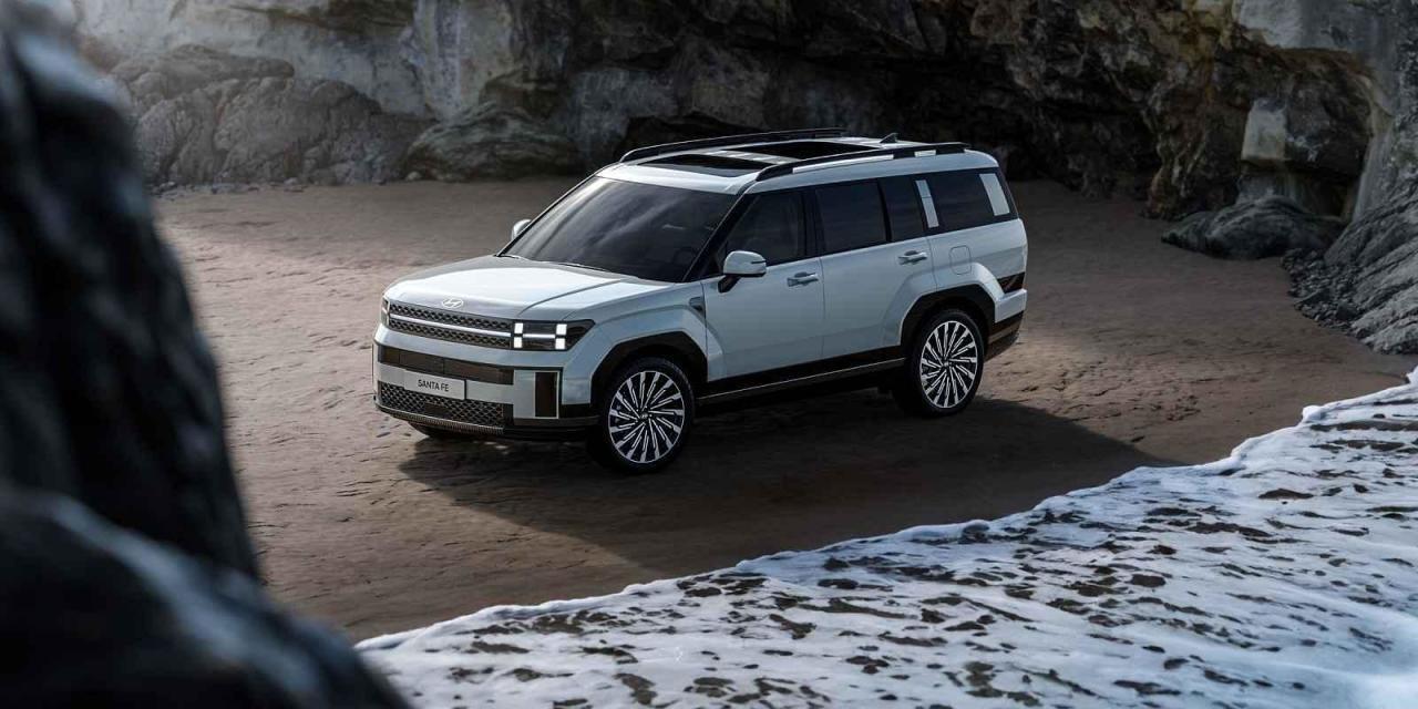 I když neznáme konkrétní rozměry, už teď můžeme říci, že Santa Fe bude skutečně robustní auto. Design prakticky bez oblin, jehož futuristická příď i záď hraje prvky ve tvaru písmene „H“, pod širokými podběhy skrývá i velká 21palcová kola, jako by šlo o mnohem menší disky.