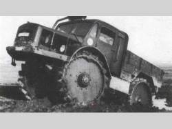 V roce 1941 se proto zrodila myšlenka čtyřkolového vozidla zajímavé konstrukce. Základem byl žebřinový rám se dvěma tuhými nápravami zavěšenými na listových perech. Na nápravách byla potom namontována obří celoocelová kola o pozoruhodném průměru 150 centimetrů, jež měla místo pneumatik výměnné ostruhy, volitelné podle typu terénu.