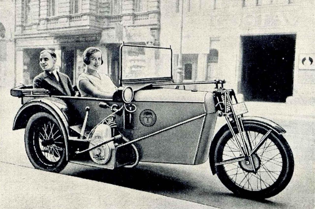 Motorová tříkolka Monos, upravená pro přepravu osob., zdroj: Wikimedia Commons, Bundesarchiv, Bild 102-08625, CC-BY-SA 3.0