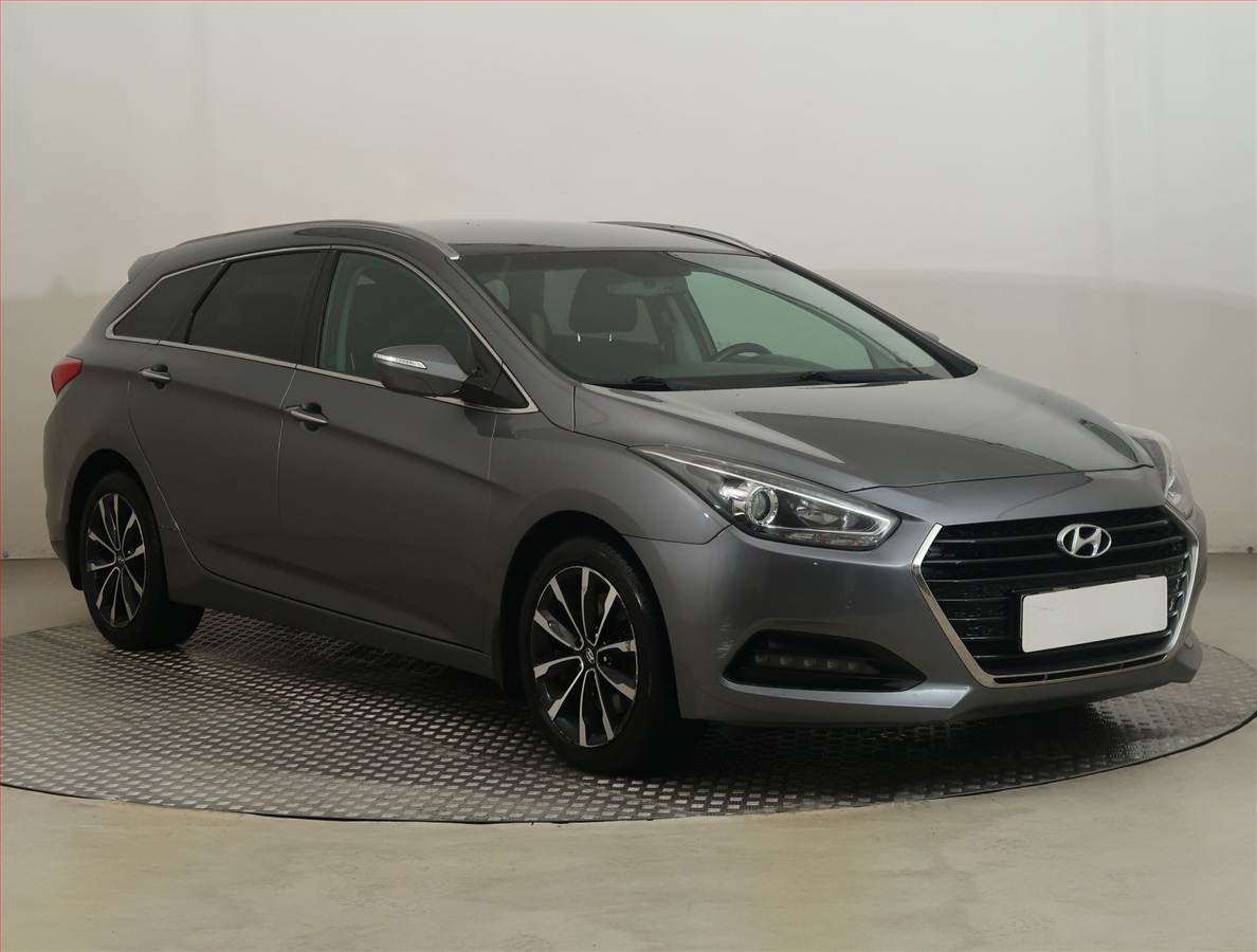 Karoserie modelu i40 je stejně jako ostatní Hyundaie vytvořena v rámci designového jazyku „fluidního sochařství“. Vzhled je tak definován řadou rafinovaně se prolínajících linií, které působí dynamicky. Čelní maska zahrnuje pro současnou generaci Hyundaií typický šestiúhelníkový otvor chladiče. Ten je dále horizontálně rozdělen a vytváří tak ideální pozici na umístění registrační značky, aniž by působila nějak rušivě. Dominantím prvkem přídě jsou ale rozměrné vystupující světlomety, které jsou lehce přimračené a obsahují efektní linku LED diod pro denní svícení. Detailem, který se mi líbil, je pak decentní přední spoiler na nárazníku. Kapota motoru je jakoby zapuštěná a její vystupující kraje vytváří plynulý přechod na A-sloupky. To také pomáhá vystoupnout blatníkům předních kol, které tak působí sympaticky svalnatým dojmem. Fluidní design je výborně využitý na bočním profilu, který je definován zanikající linkou od předního blatníku a dozadu stoupající linií s klikami dveří. V kombinaci s prolisem na spodní hraně dveří, pozvolna klesající střechou a dozadu se zužujícími okny auto působí přikrčeným dojmem a šikovně tak rozbíjí velkou plochu dveří. Záď vozu navazuje na boční linku a vévodí ji dvojice mračících se světel propojených chromovou lištou. Za zmínku stojí také zešikmené okno pátých dveří, které sice v kombinaci se střešním spoilerem autu sluší, ale omezuje výhled dozadu. Testovaný vůz byl pak doplněn 17“ disky (paket Style za 70 000,-), které zbytku auta slušely. Shrnuto a podtrženo se jedná dle mého názoru o nejhezčí Hyundai, ne-li nejhezčí kombík na trhu. Designérům v Rüsselsheimu se povedlo využít efektní fluidní linie a zároveň zachovat jakousi konzervativní přitažlivost. Vytknout by se jim dala snad jen z některých úhlů těžkopádně působící záď.