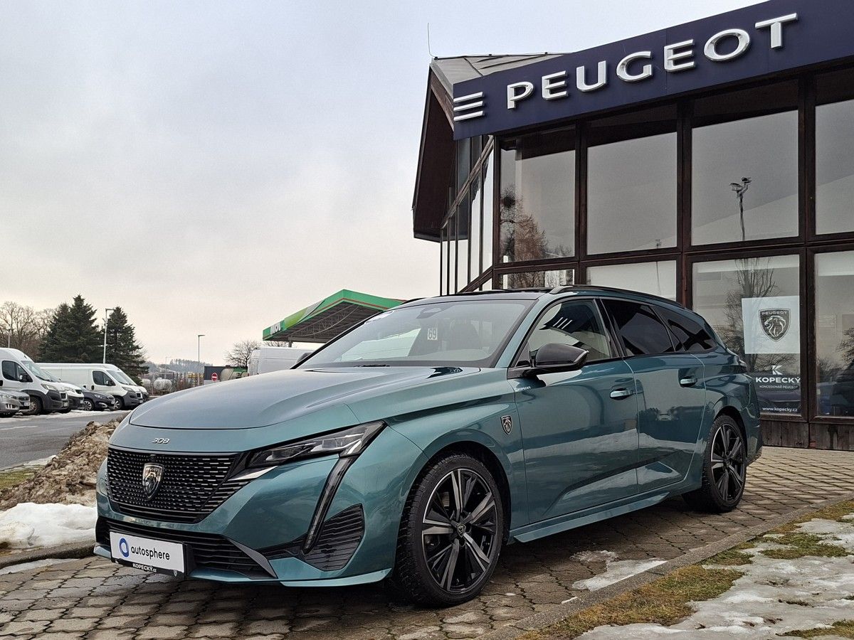 Design karoserie je čistý a nelze k němu mít závažnější výhradu. Kombi 308 SW využívá stejně jako hatchback novou platformu EMP2 skupiny PSA. Tato „Efficient Modular Platform“ umožňuje značnou variabilitu. Rozvor se oproti hatchbacku prodloužil o 11 cm, které byly využity výhradně ve prospěch prostornosti zadní části vozu, hlavně pokud jde o prostor ve výši kolen, a objemu zavazadlového prostoru. Čelní strana vozu Peugeot 308 SW je stejná jako u hatchbacku. Nechybí technologie Full LED (31 LED diod v každém světlometu), která je součástí sériové výbavy u vyšších úrovní. Z profilu působí třistaosmička ladně a štíhle. Zadní světla přesahují stejně jako u hatchbacku na boky vozu a slouží jako neobvyklý světelný podpis ve tvaru C, který vytváří 42 LED diod, se třemi dalšími LED diodami v každém světlometu zajišťujícími funkci brzdových světel.